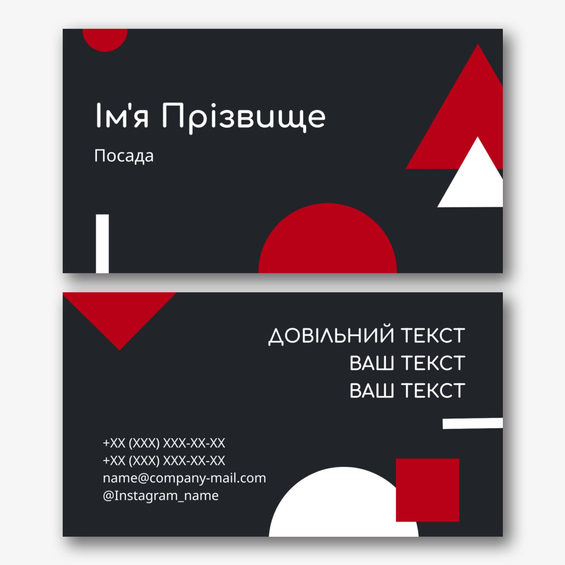 Шаблон абстрактної візитки на чорному фоні для представників компаній, керівників, адміністраторів. Створіть макет візитки своїми руками в онлайн-конструкторі візиток.
