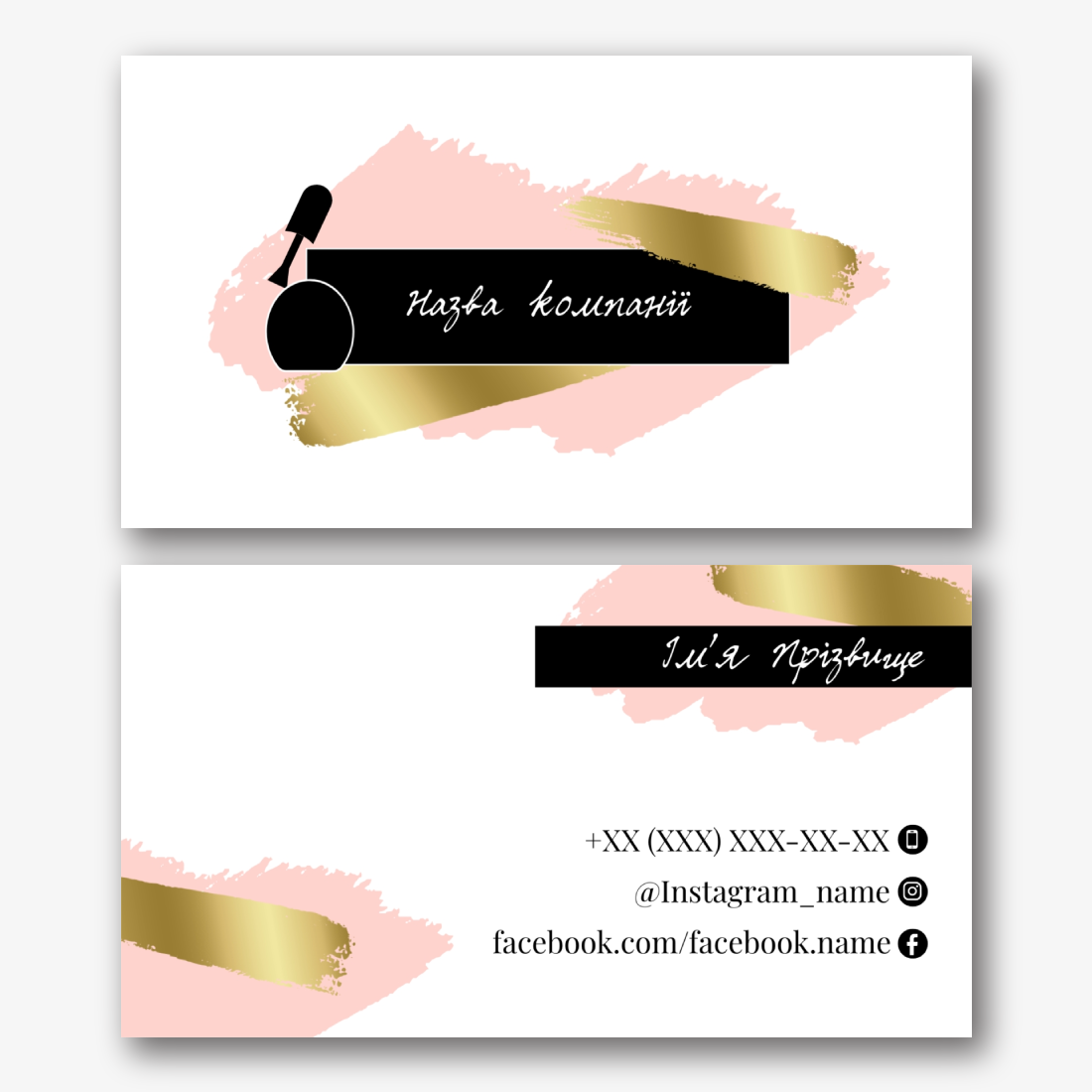 Безкоштовний шаблон стильної візитки майстра манікюру, манікюрного салону, beauty студії. Створіть макет візитки своїми руками в онлайн-конструкторі візиток.