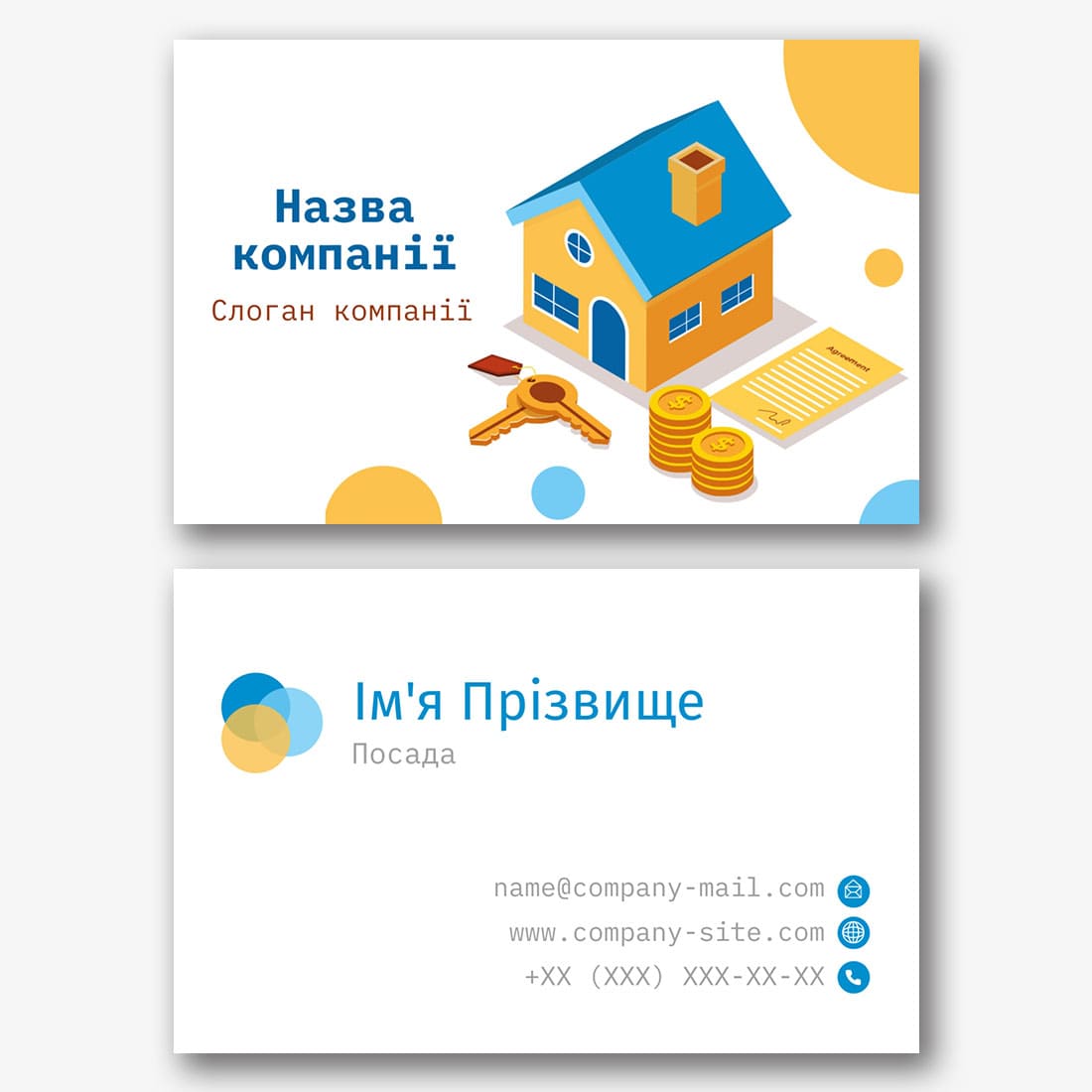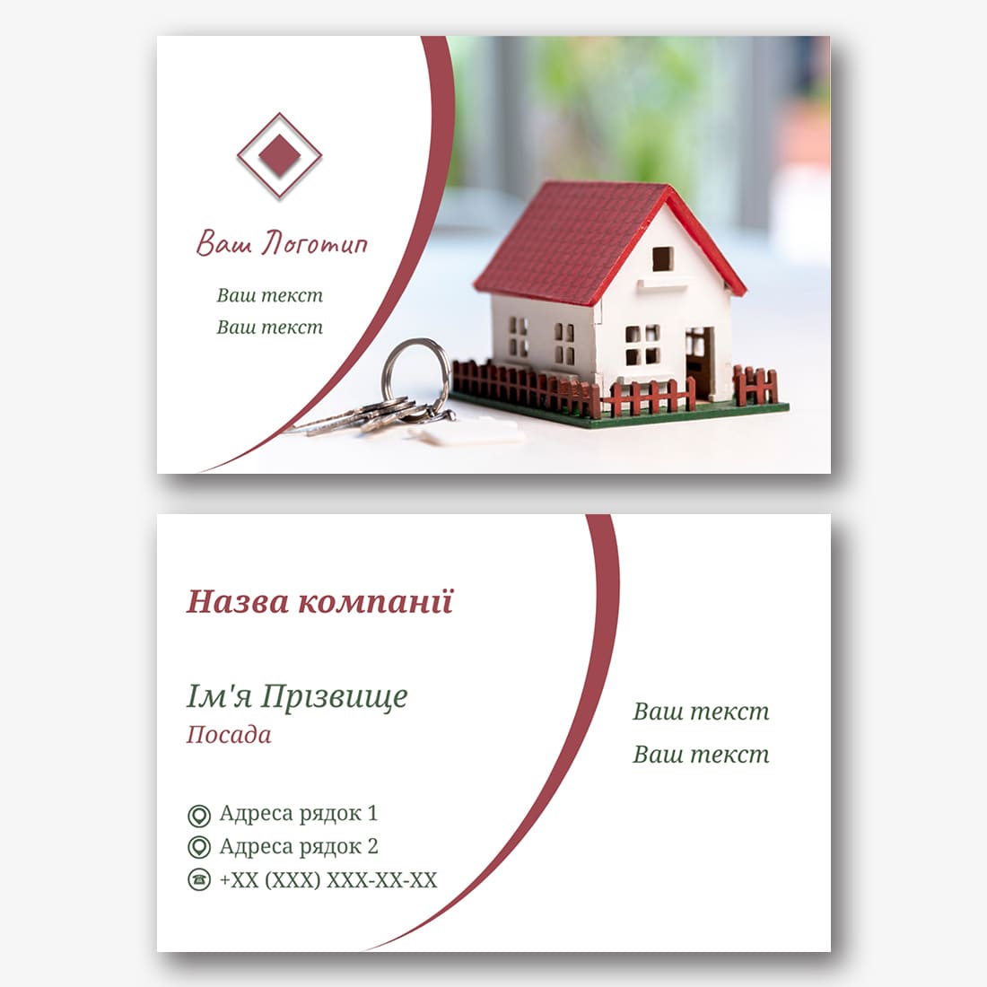 Безкоштовний шаблон візитки забудовника, ріелтора, агентства нерухомості. Створіть макет своїми руками в конструкторі візиток.